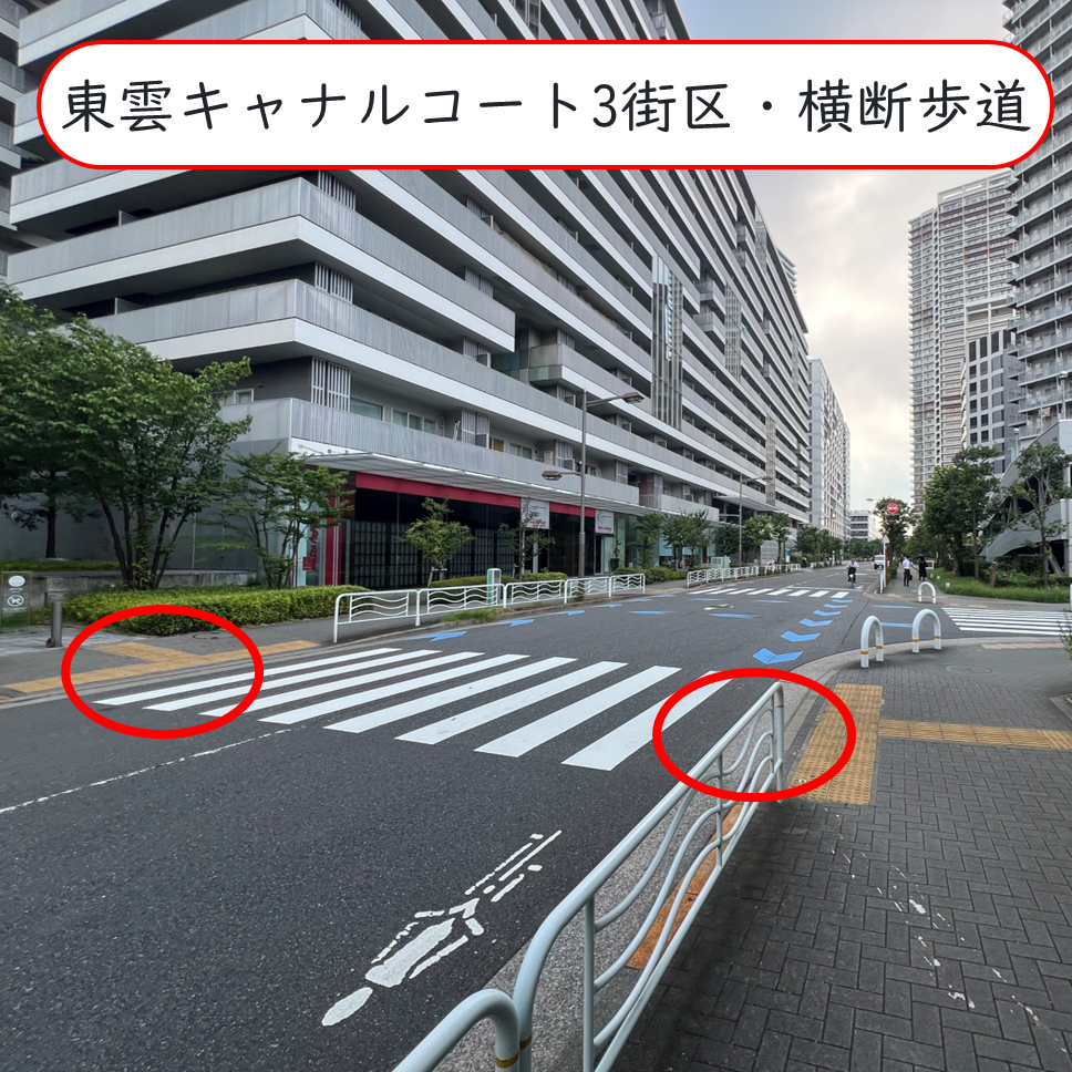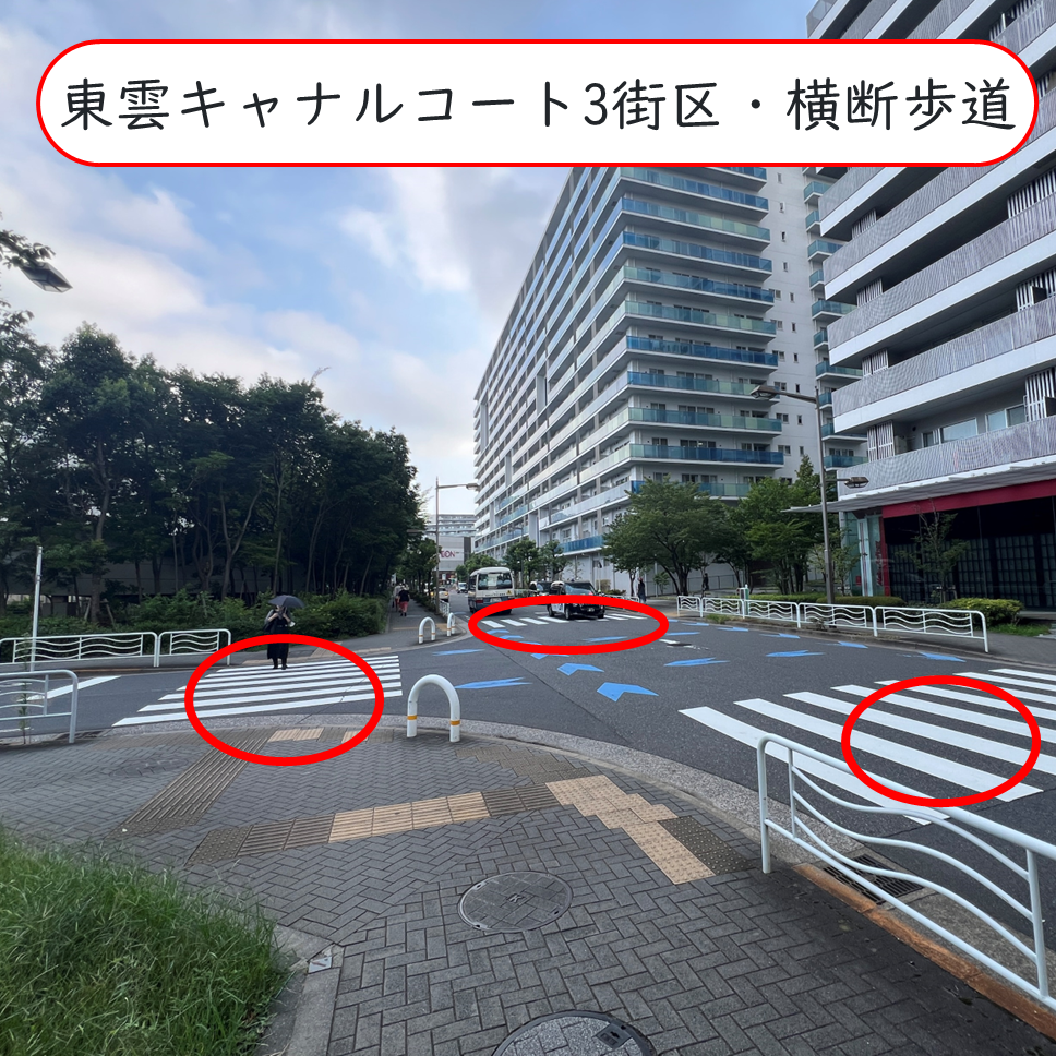 東雲キャナルコート3街区、信号の無い横断歩道について説明します。