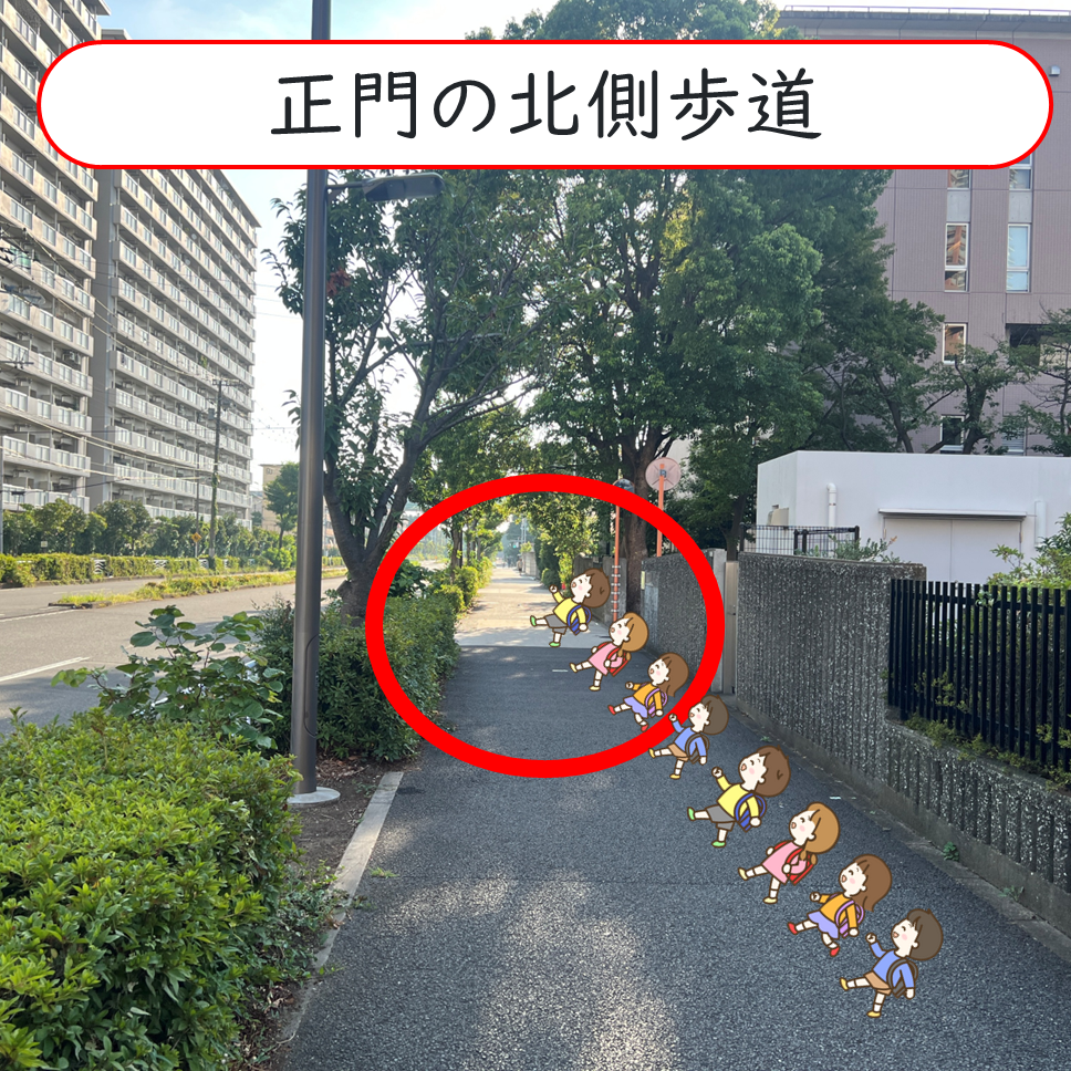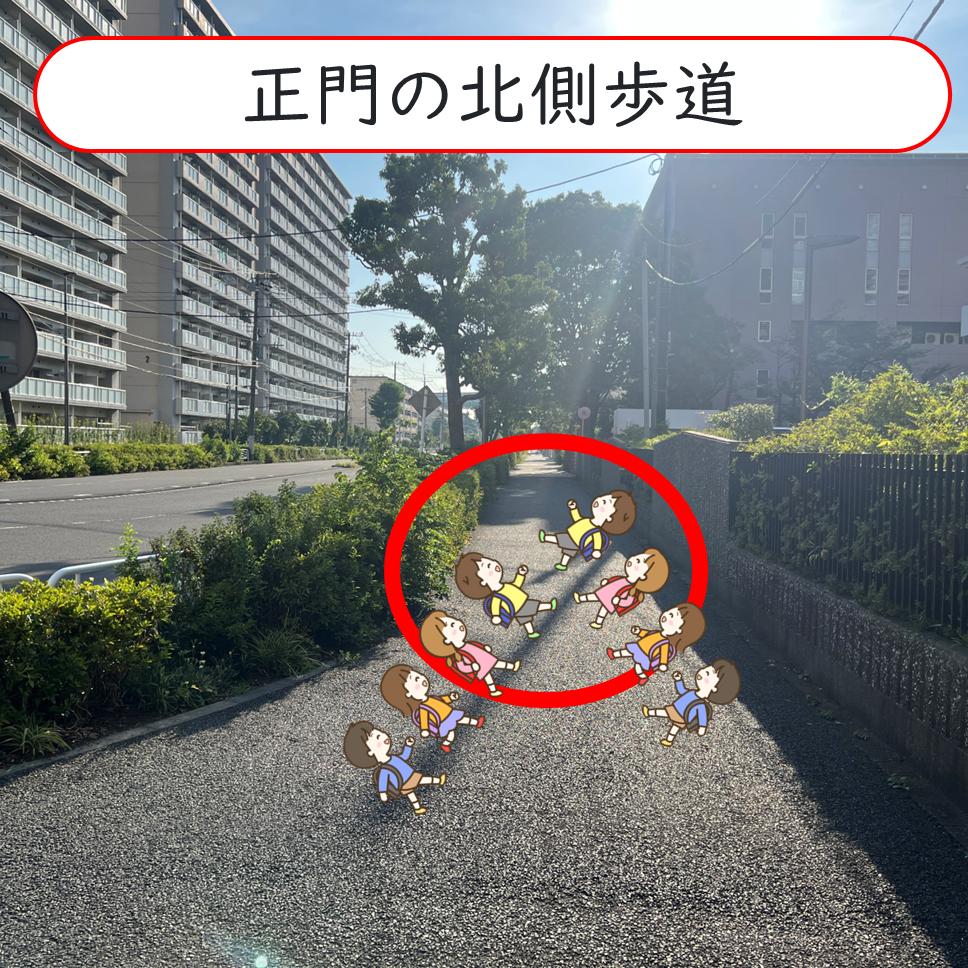 児童が複数人で歩いている場合など、この狭くなった歩道へうまく対応できず、広がったまま歩行してしまうことがあります。