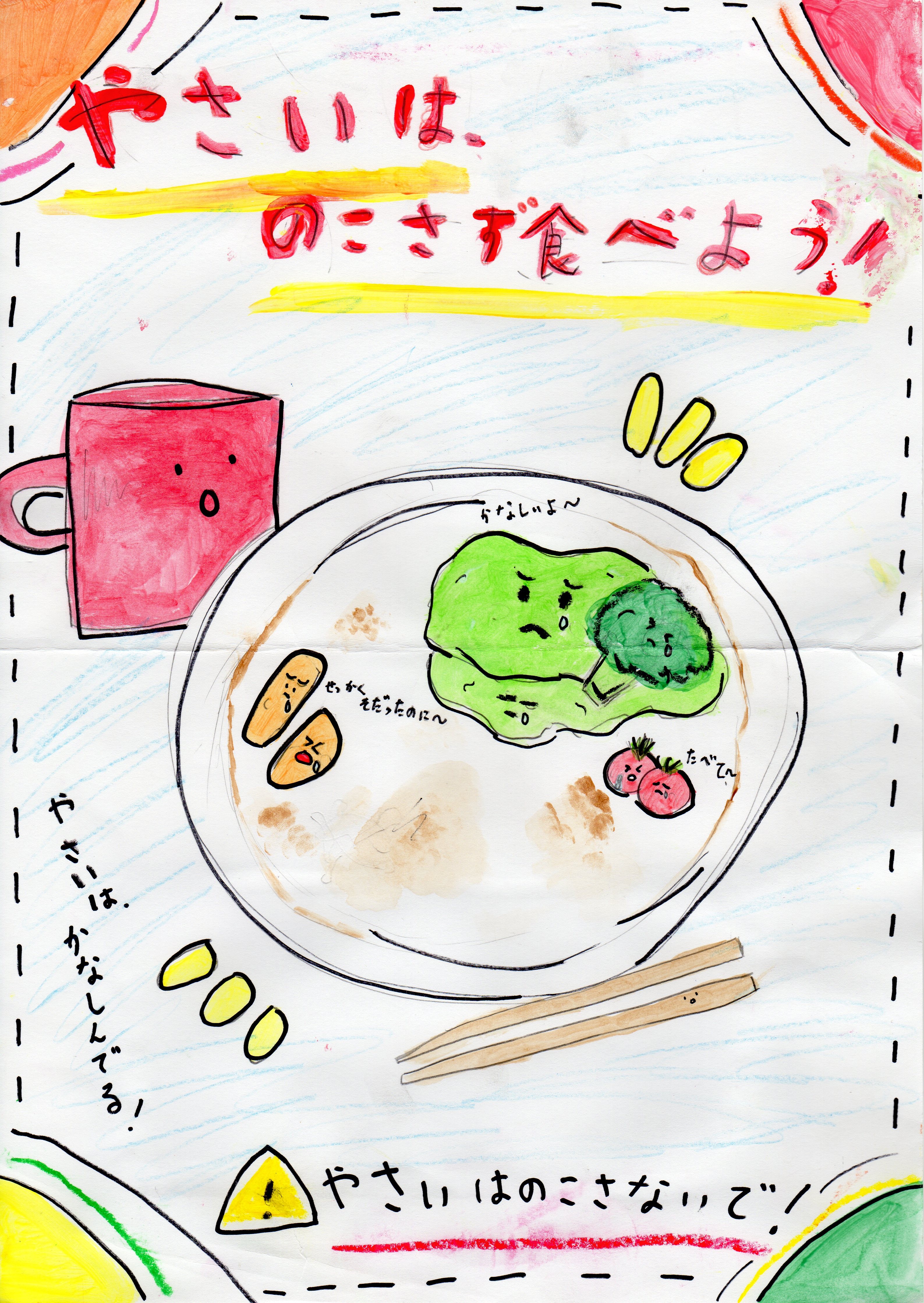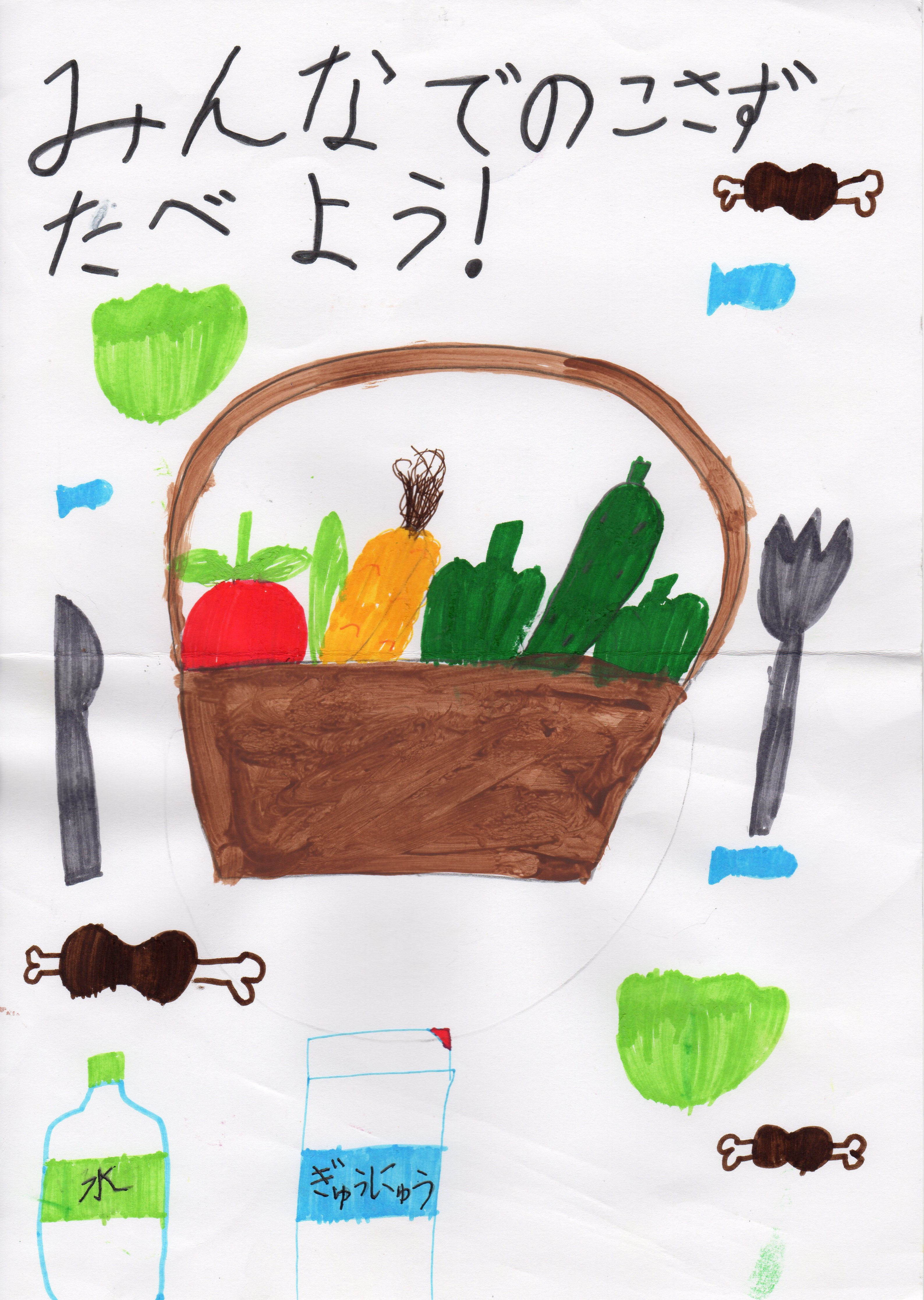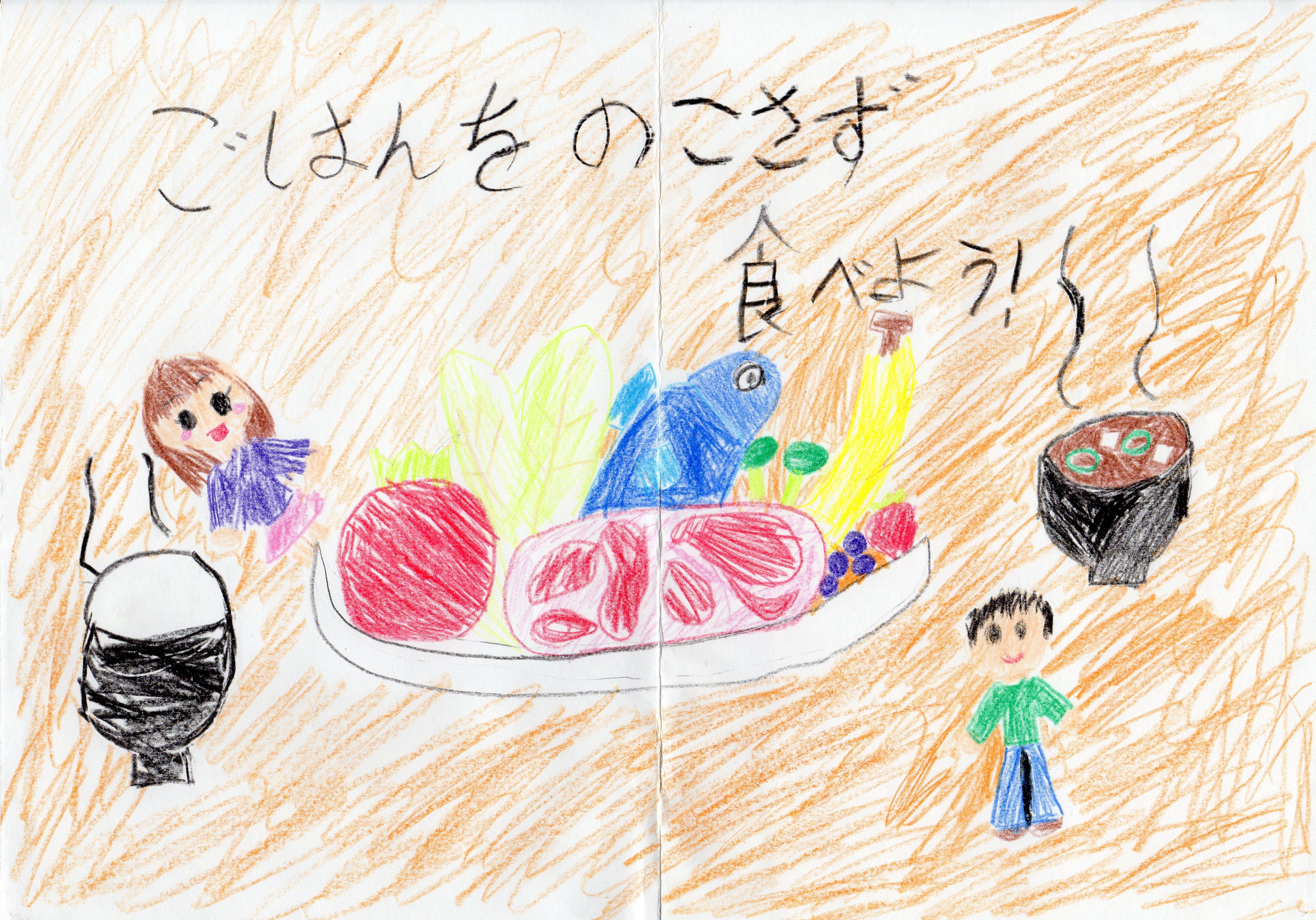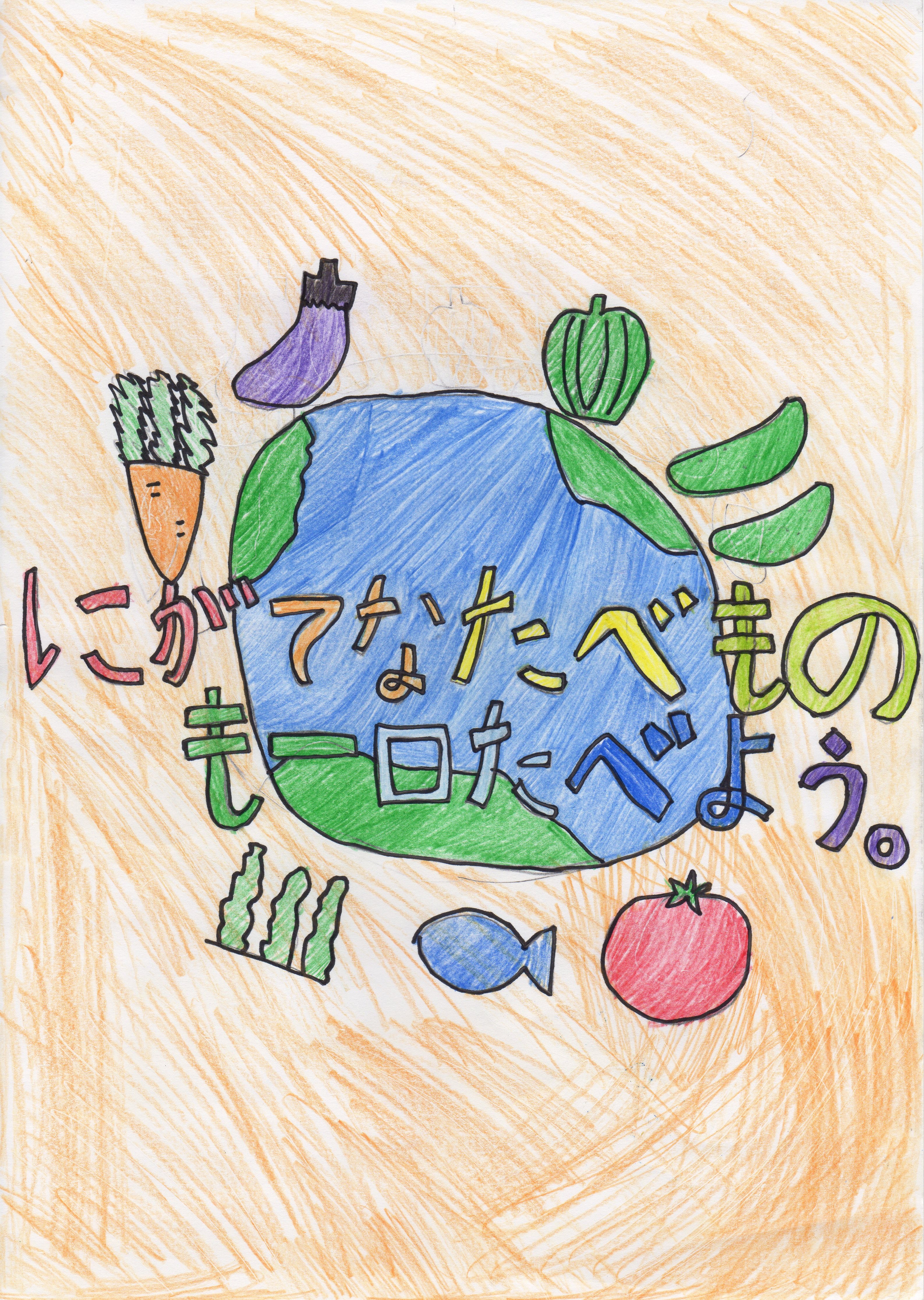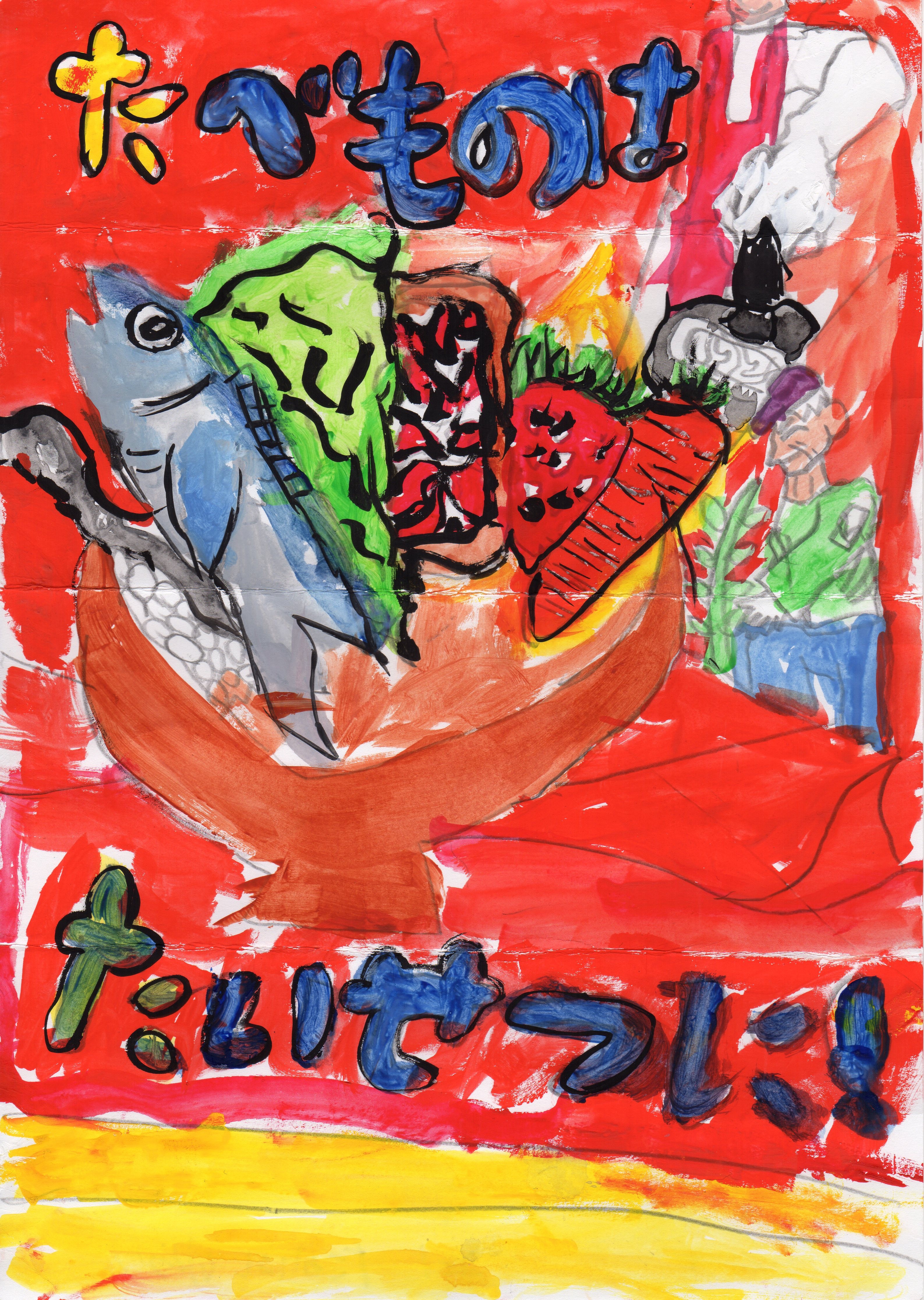 食事の楽しさや大切さ、栄養バランス、食文化、食事マナー、食品ロス削減、地産地消など「食べ物」に関するテーマで、ポスターを描いてくれました。