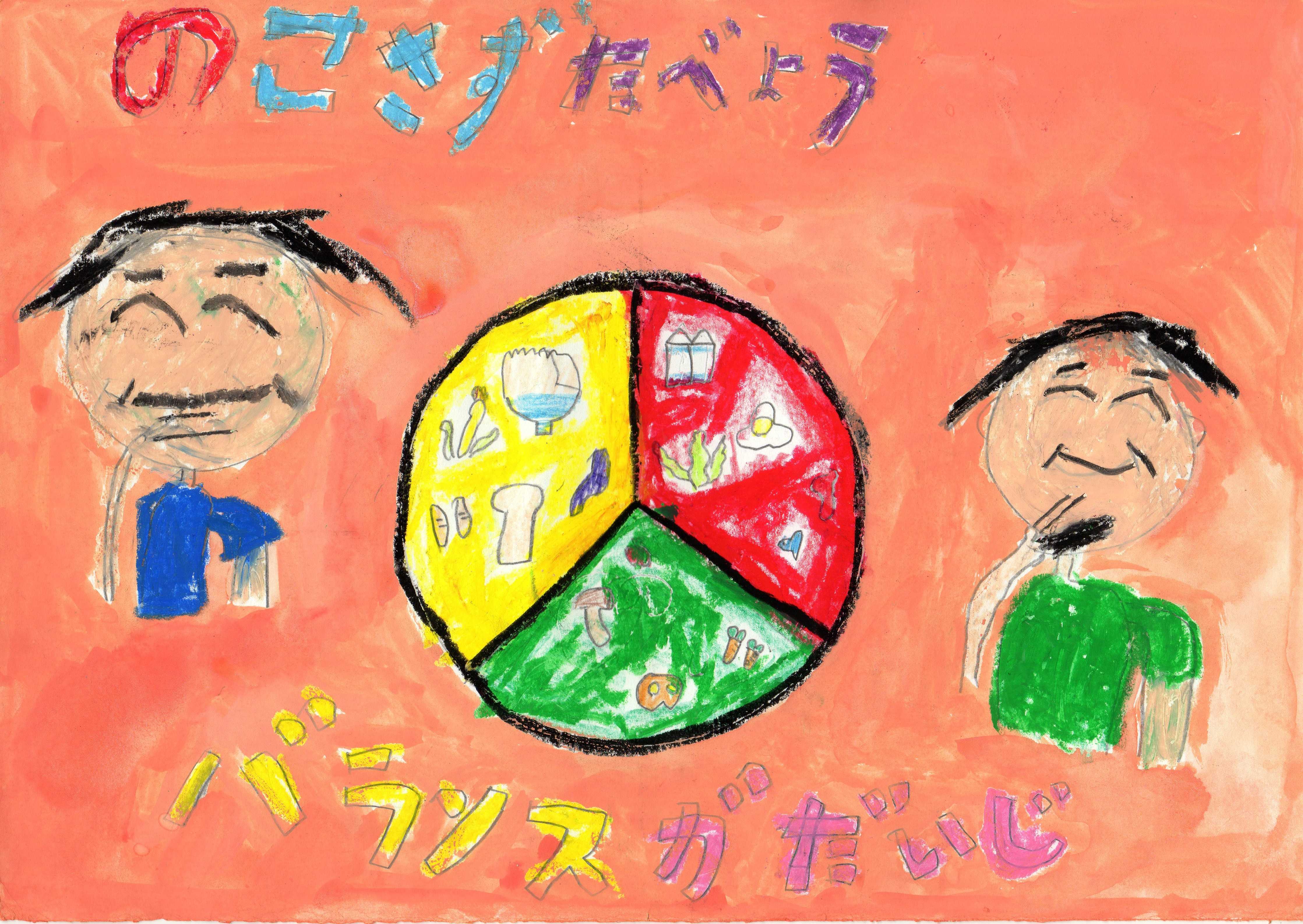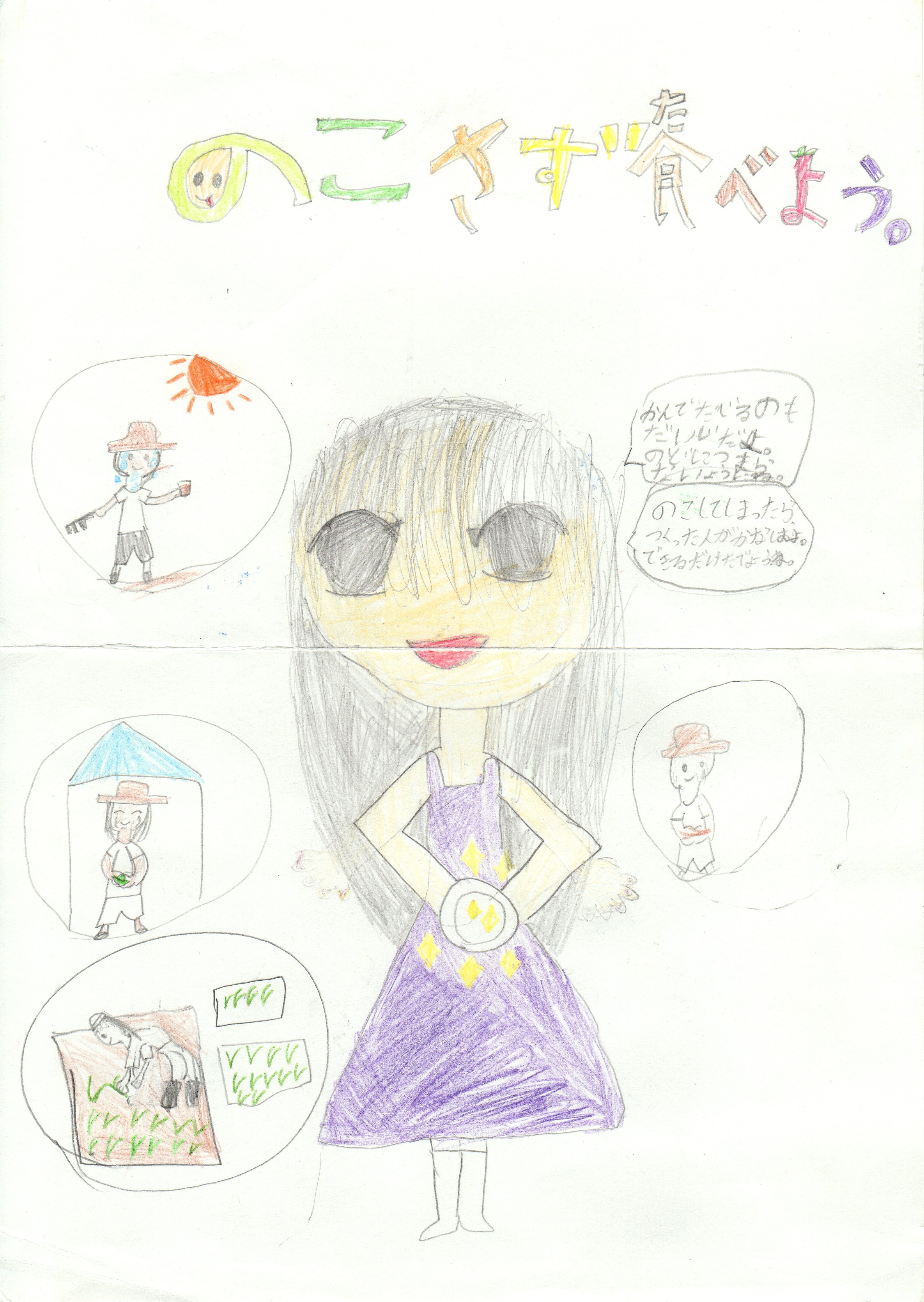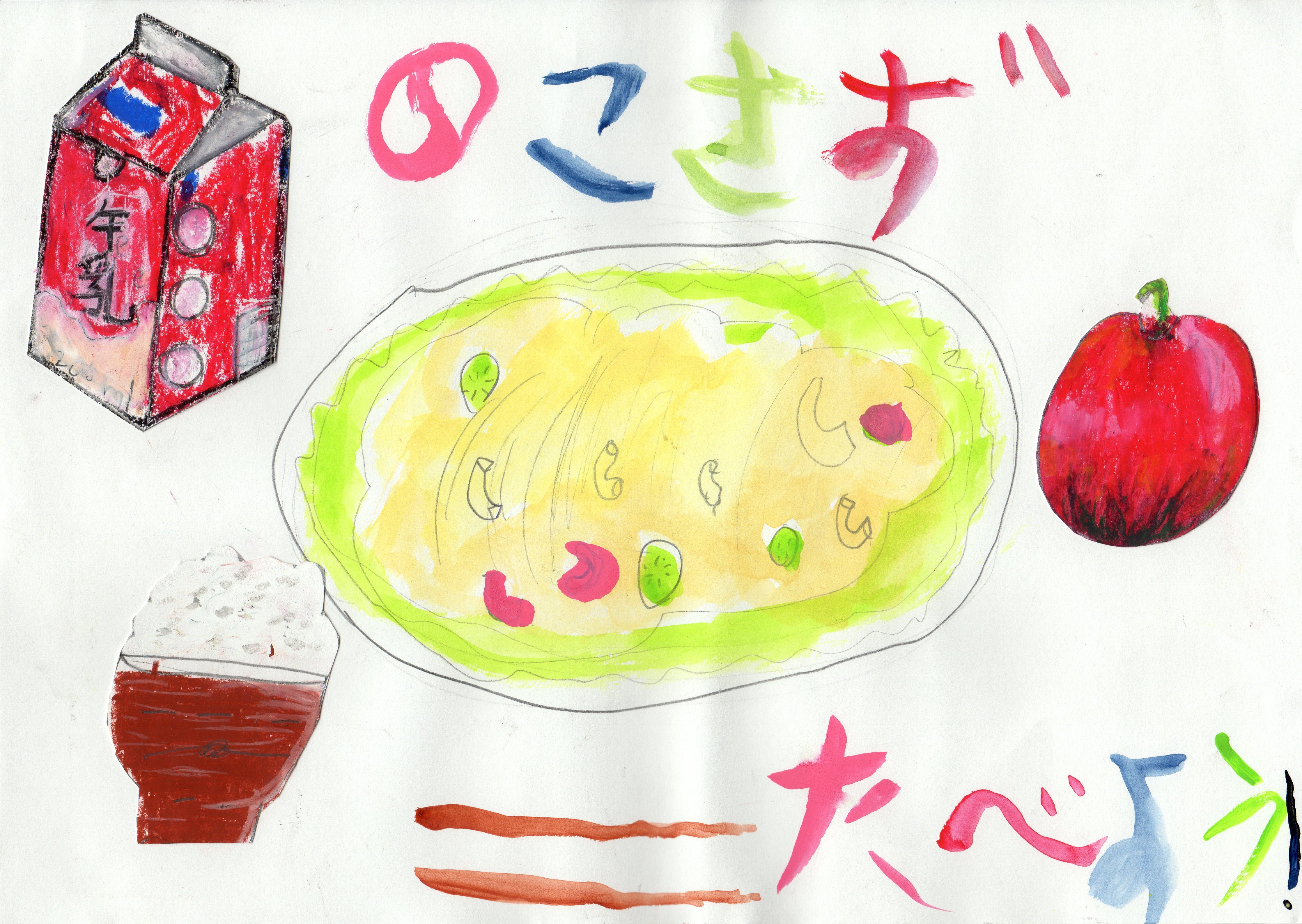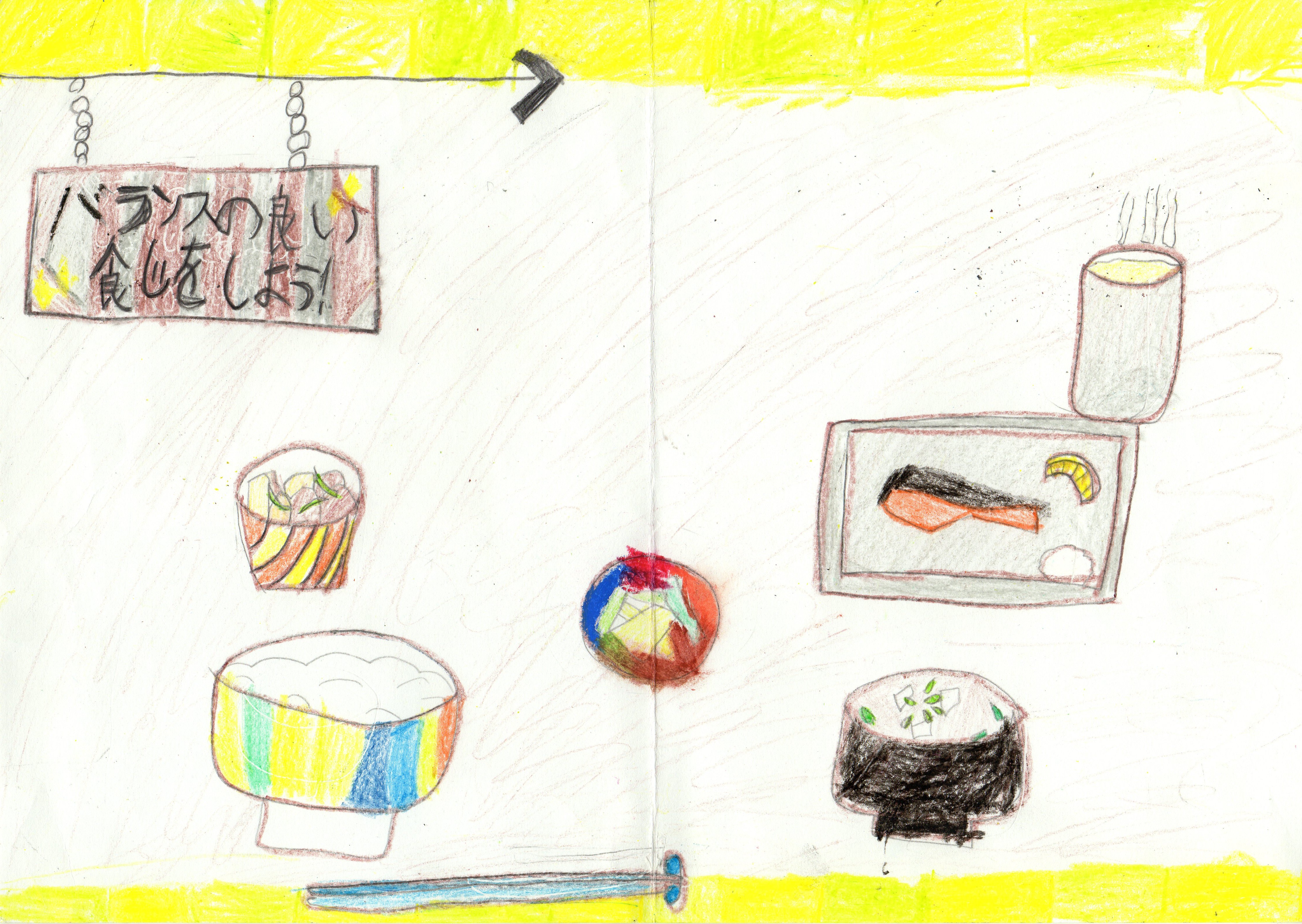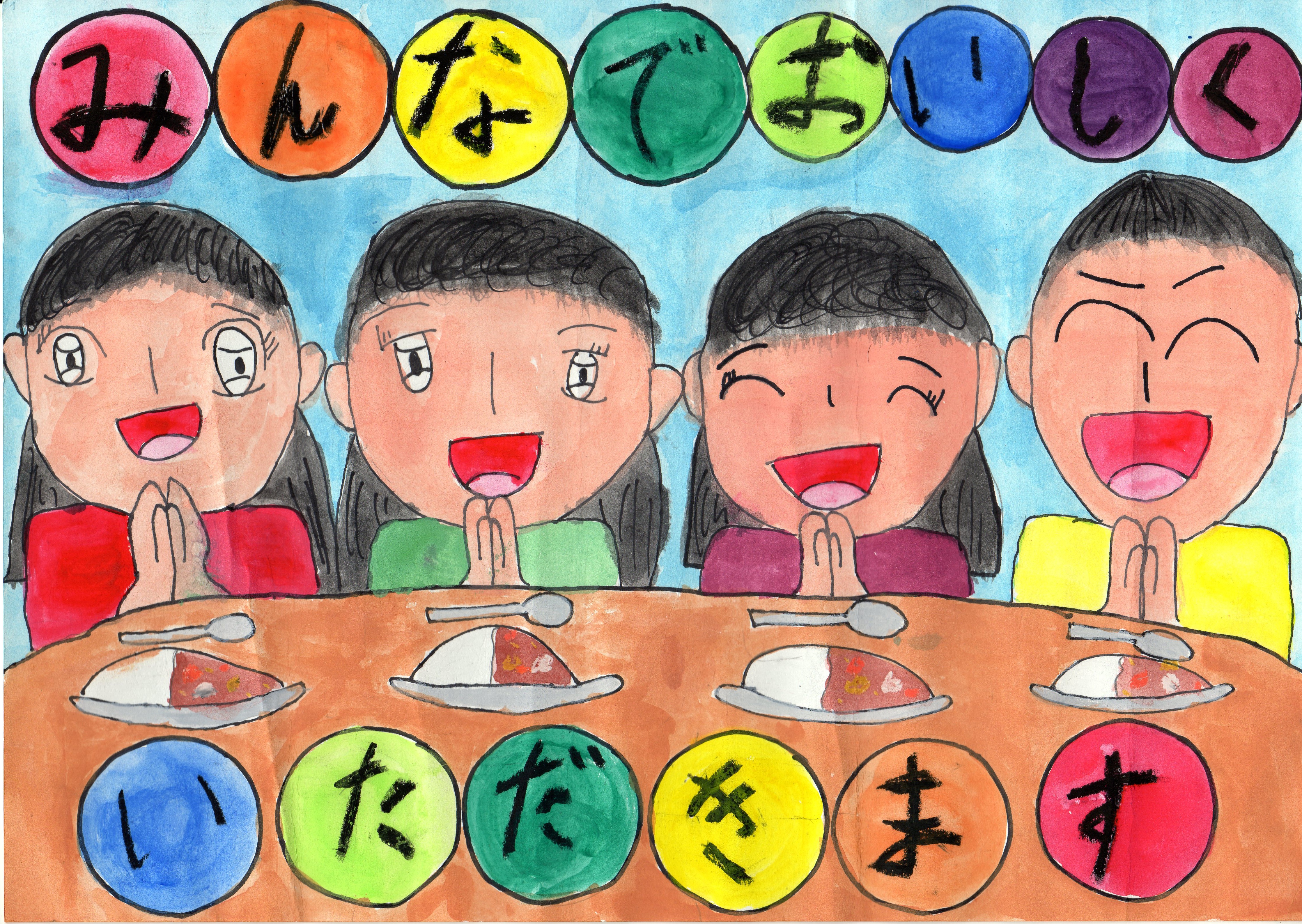 食事の楽しさや大切さ、栄養バランス、食文化、食事マナー、食品ロス削減、地産地消など「食べ物」に関するテーマで、ポスターを描いてくれました。