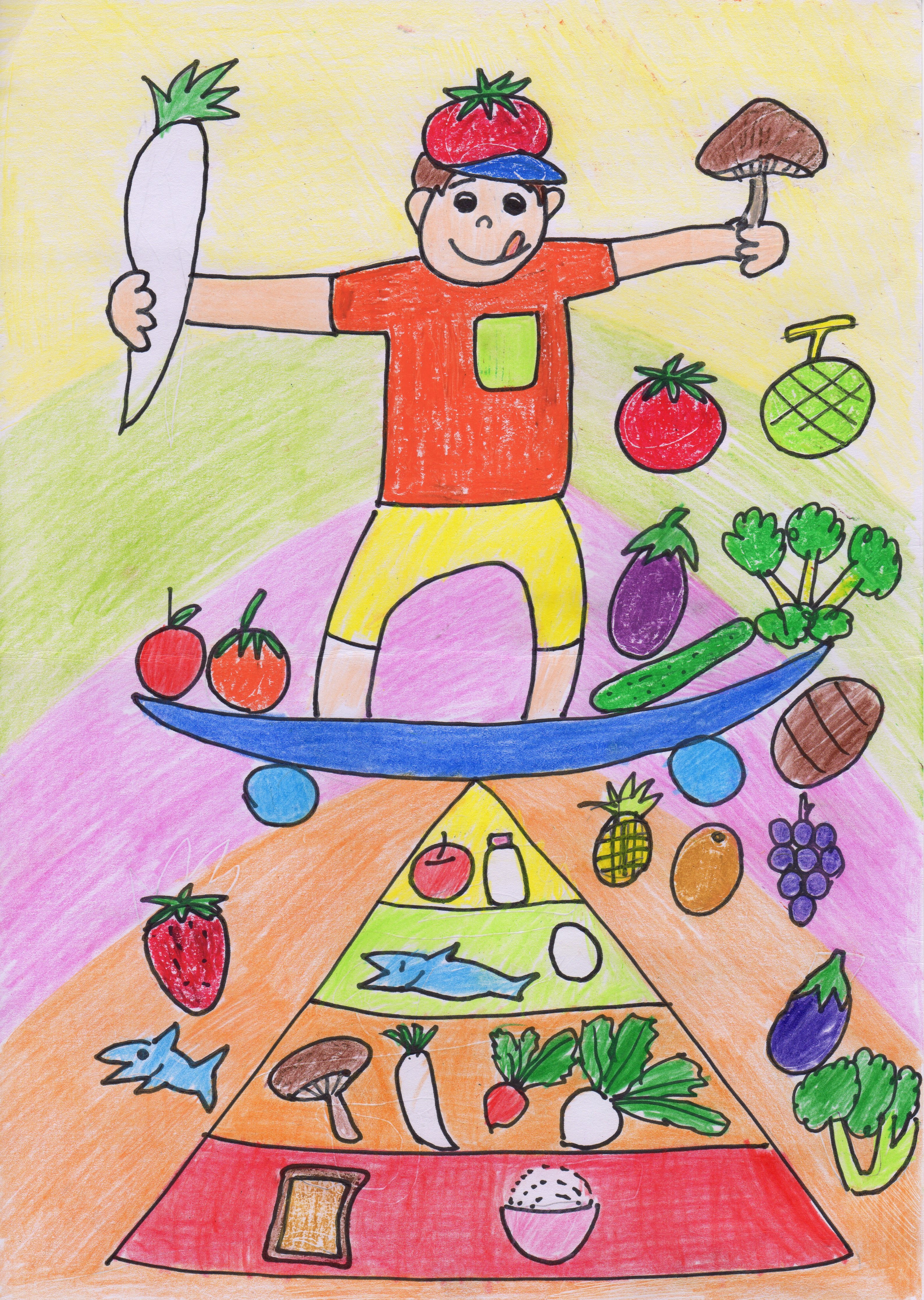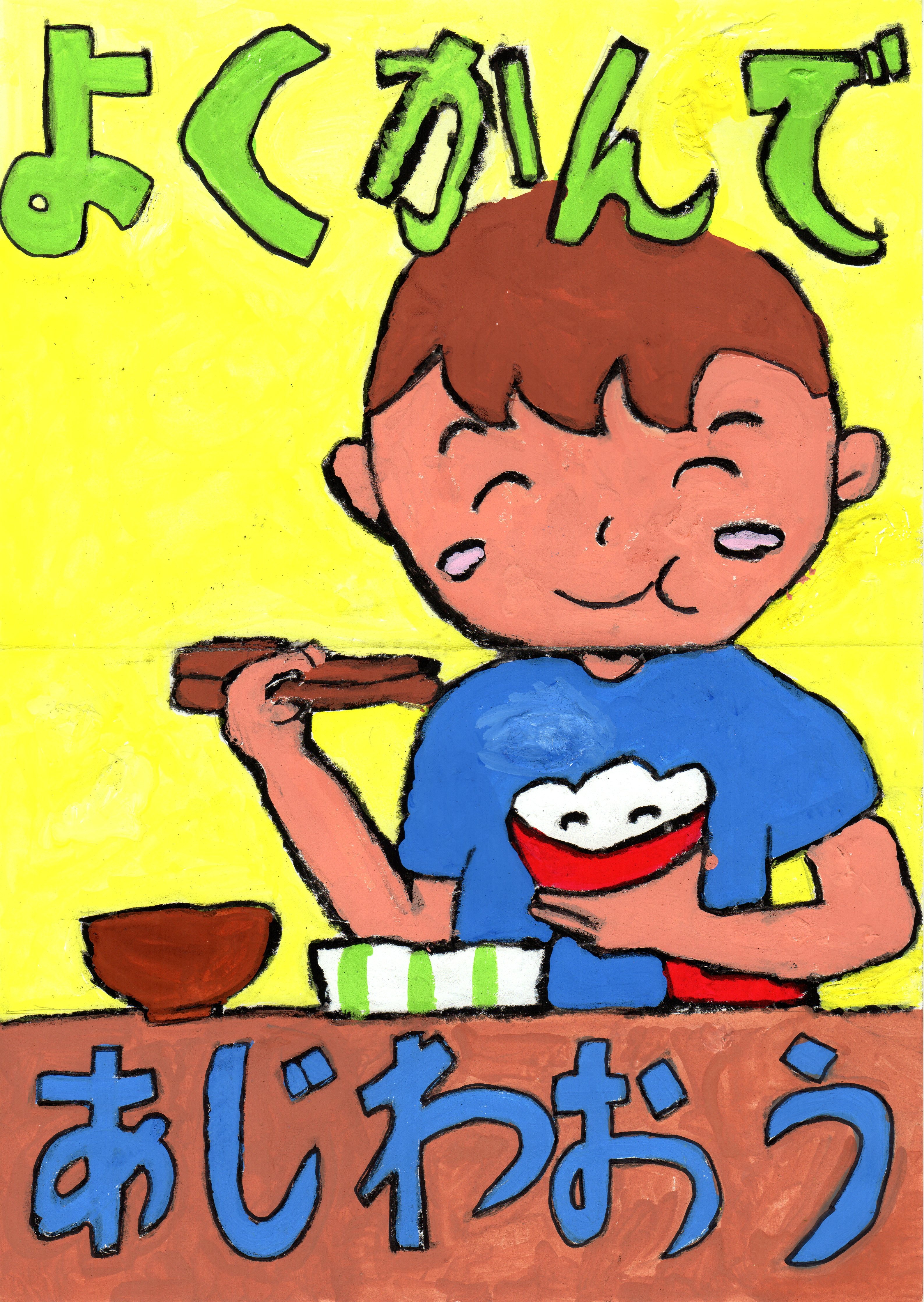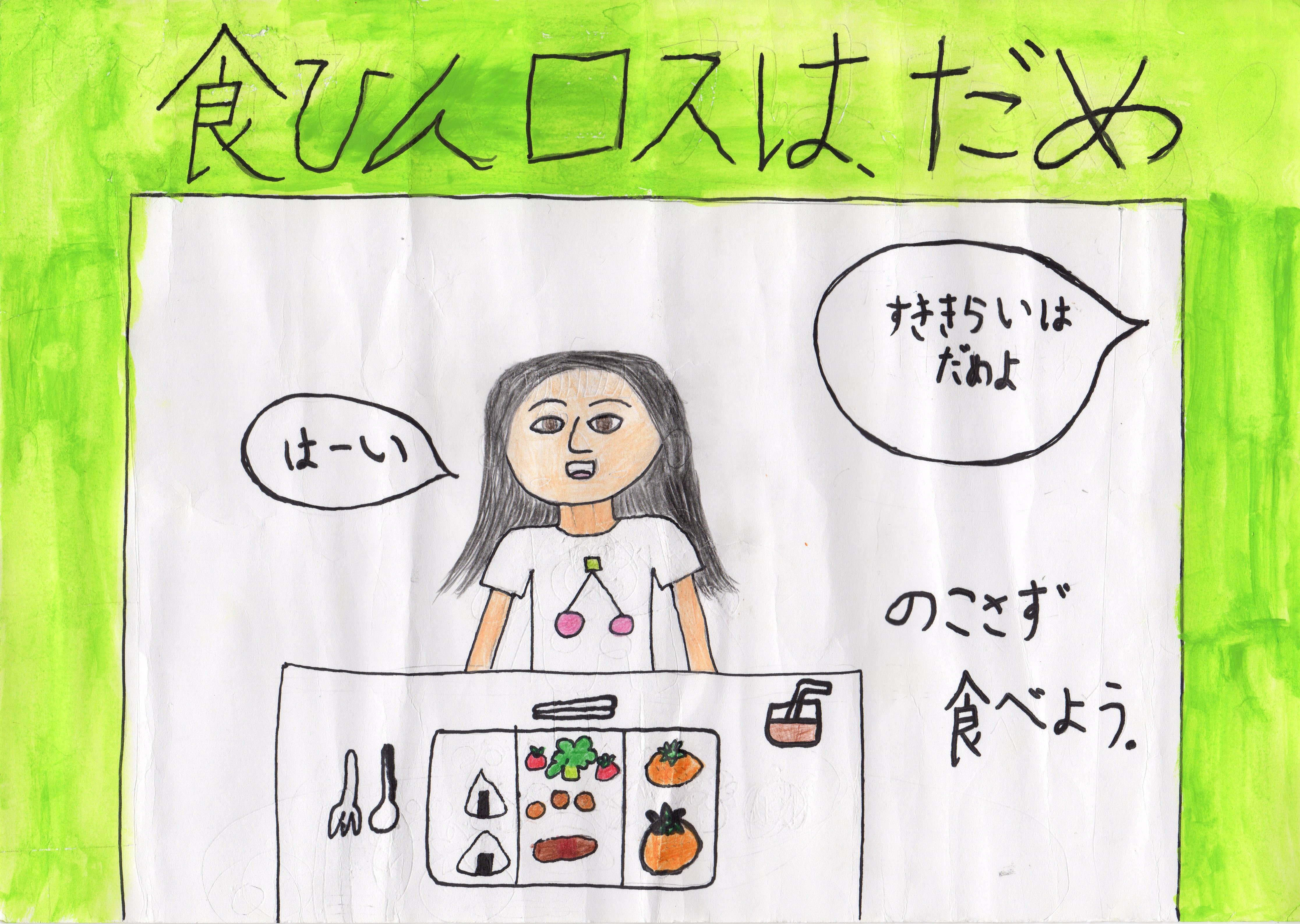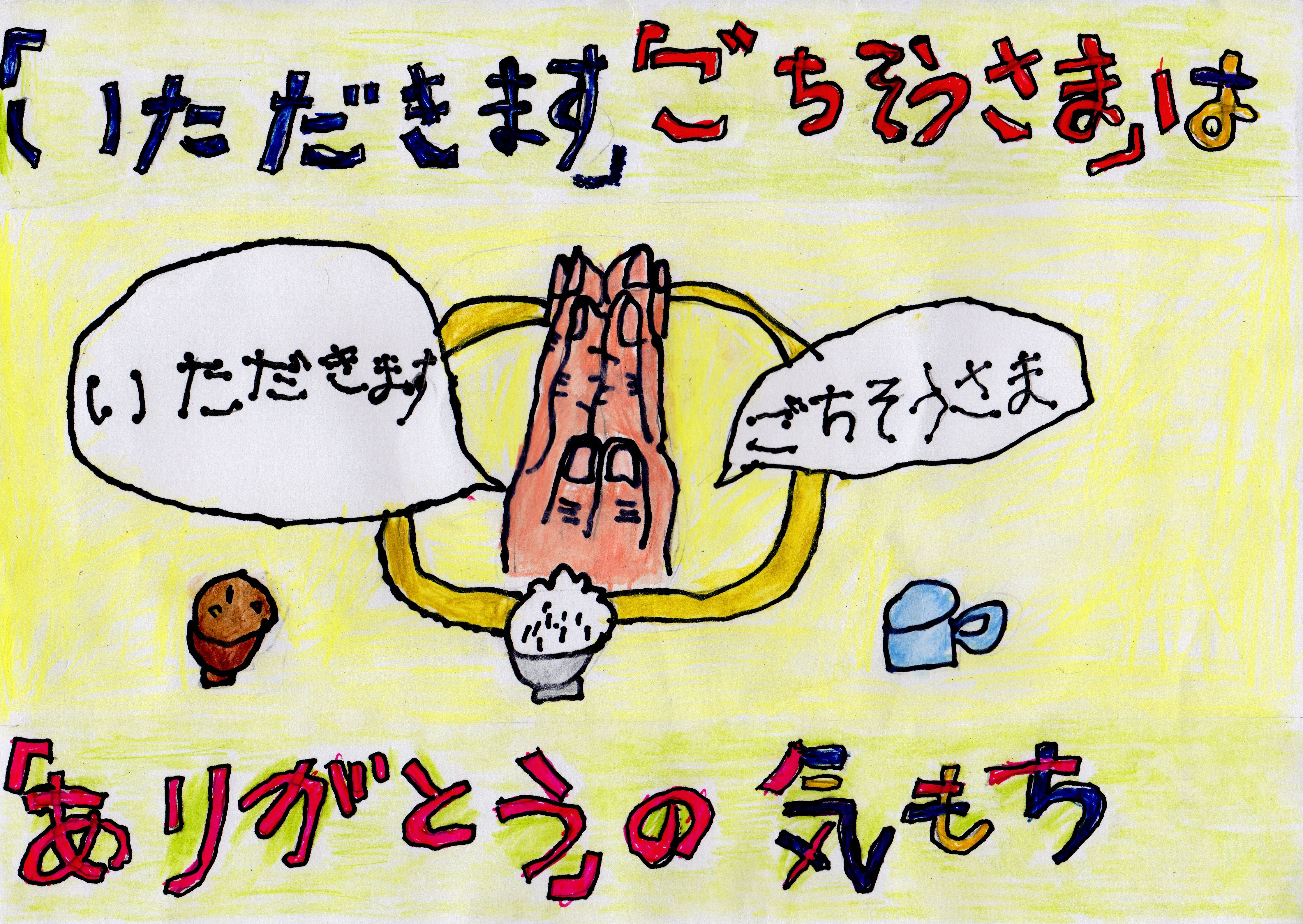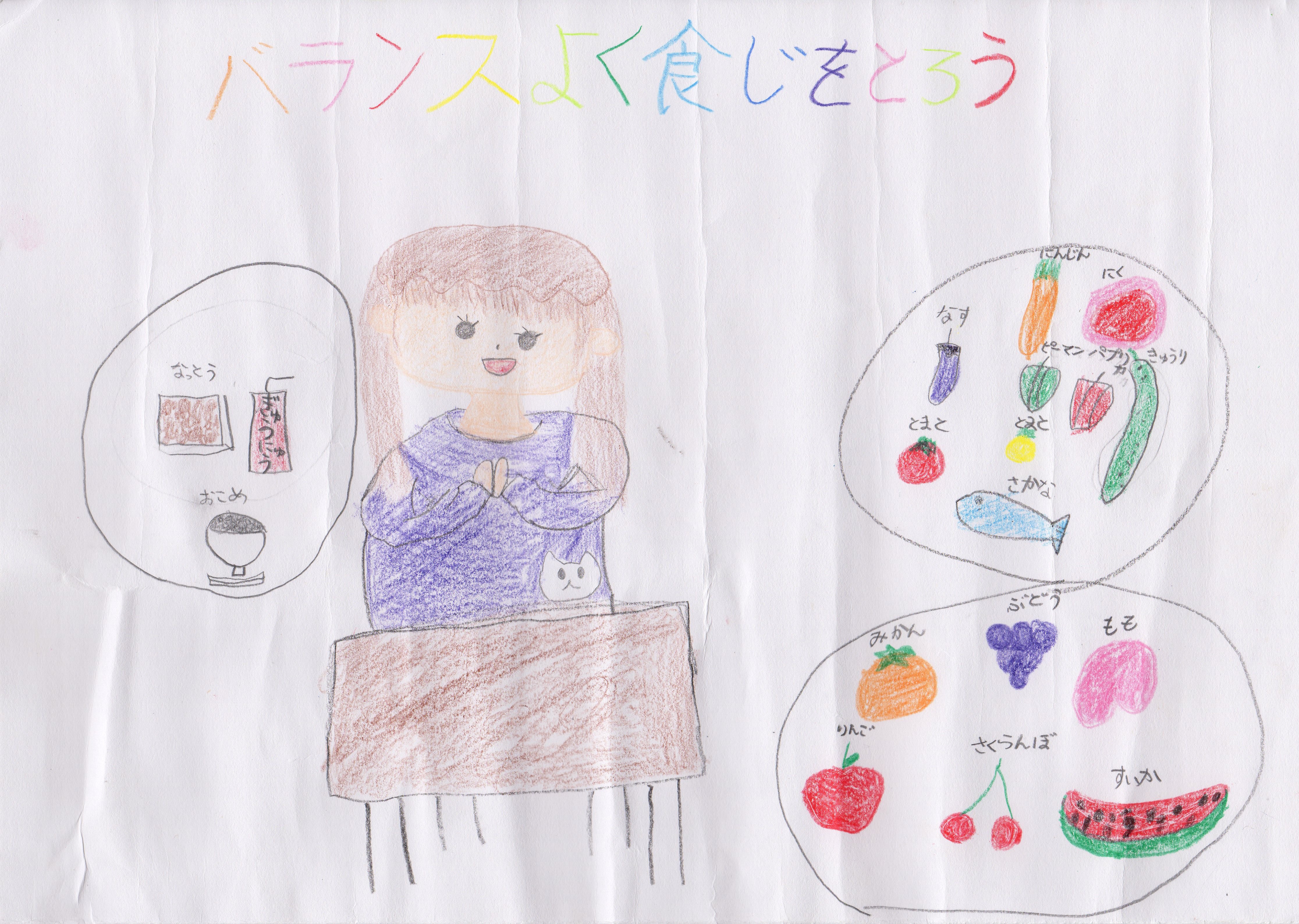 食事の楽しさや大切さ、栄養バランス、食文化、食事マナー、食品ロス削減、地産地消など「食べ物」に関するテーマで、ポスターを描いてくれました。