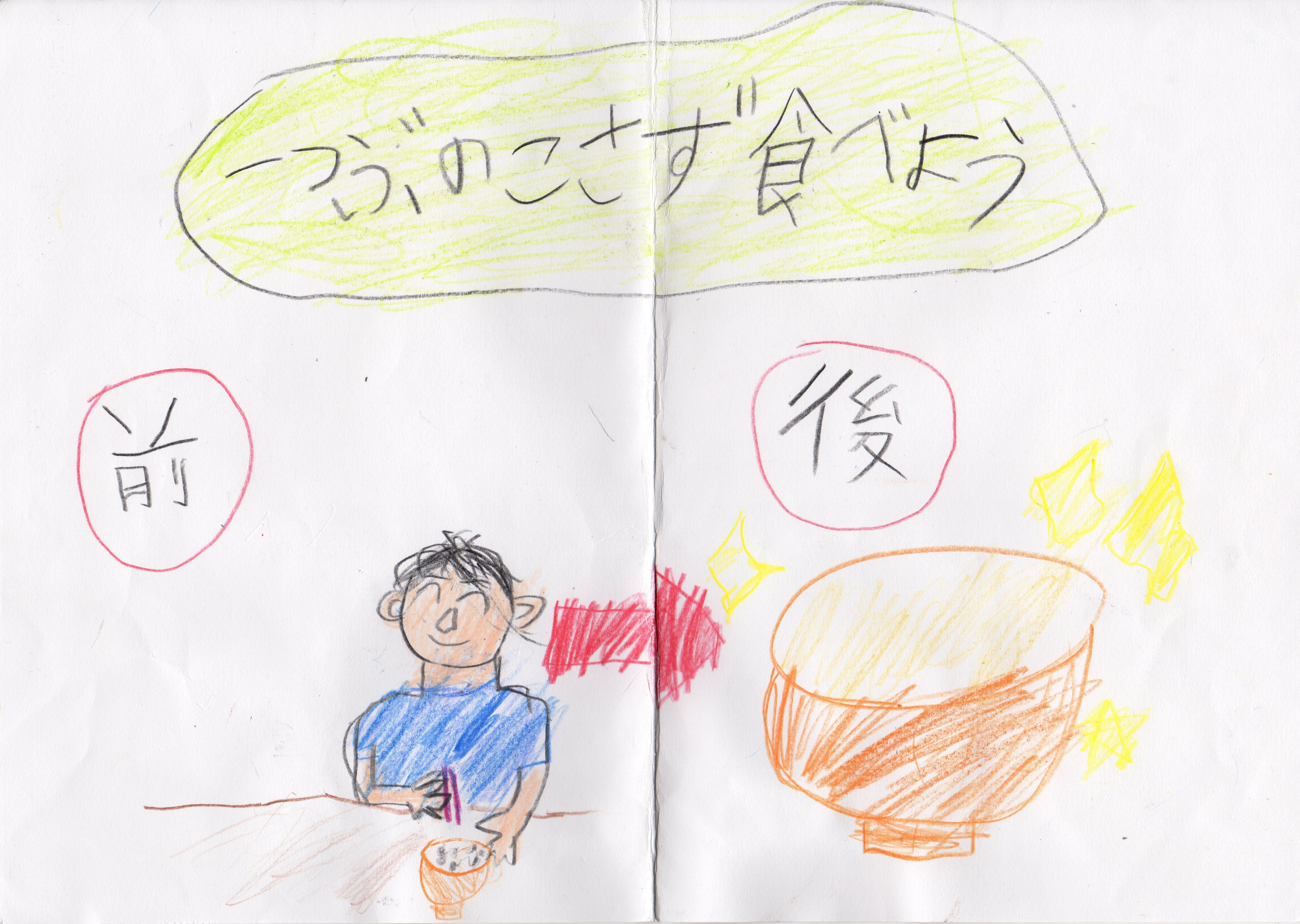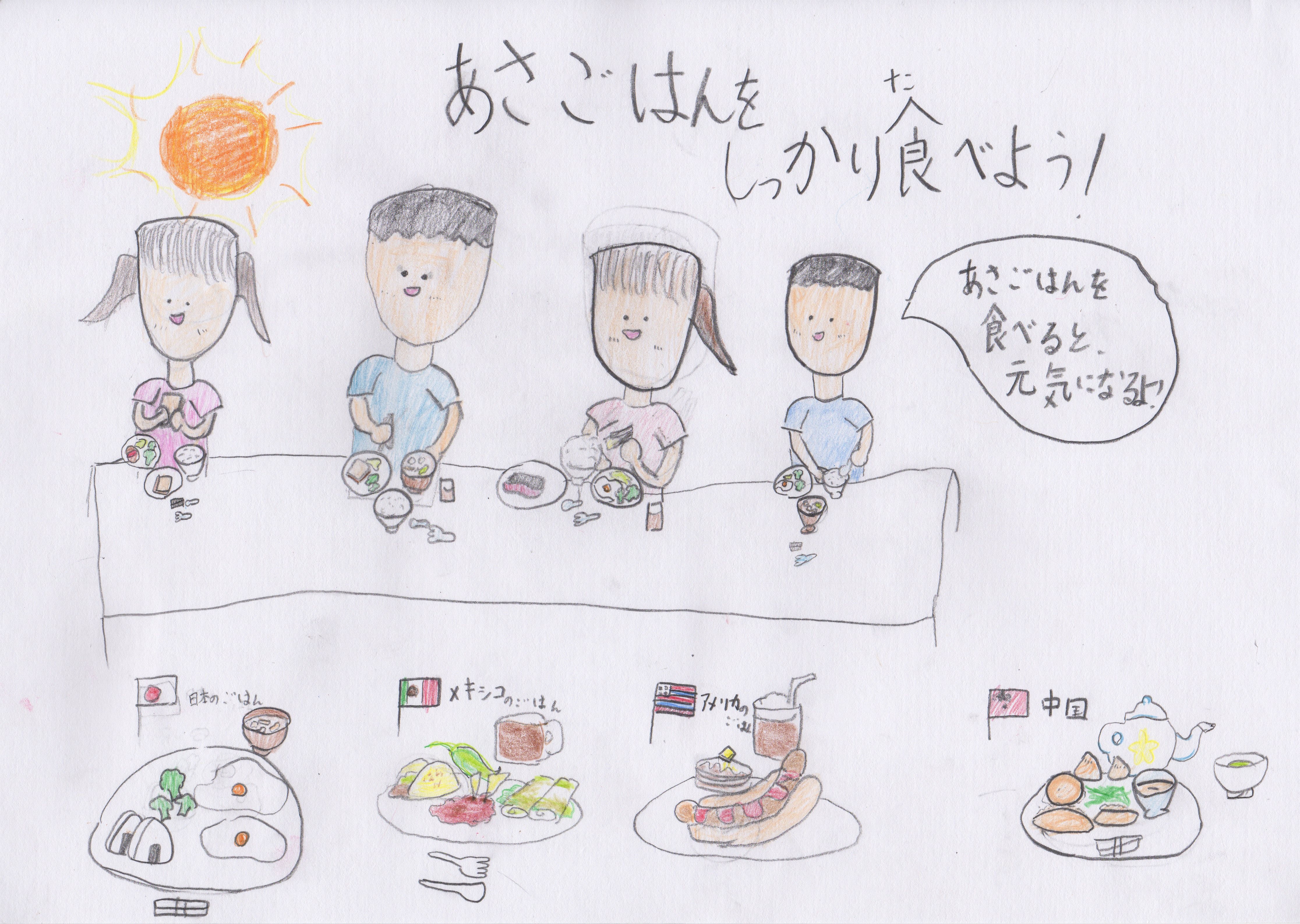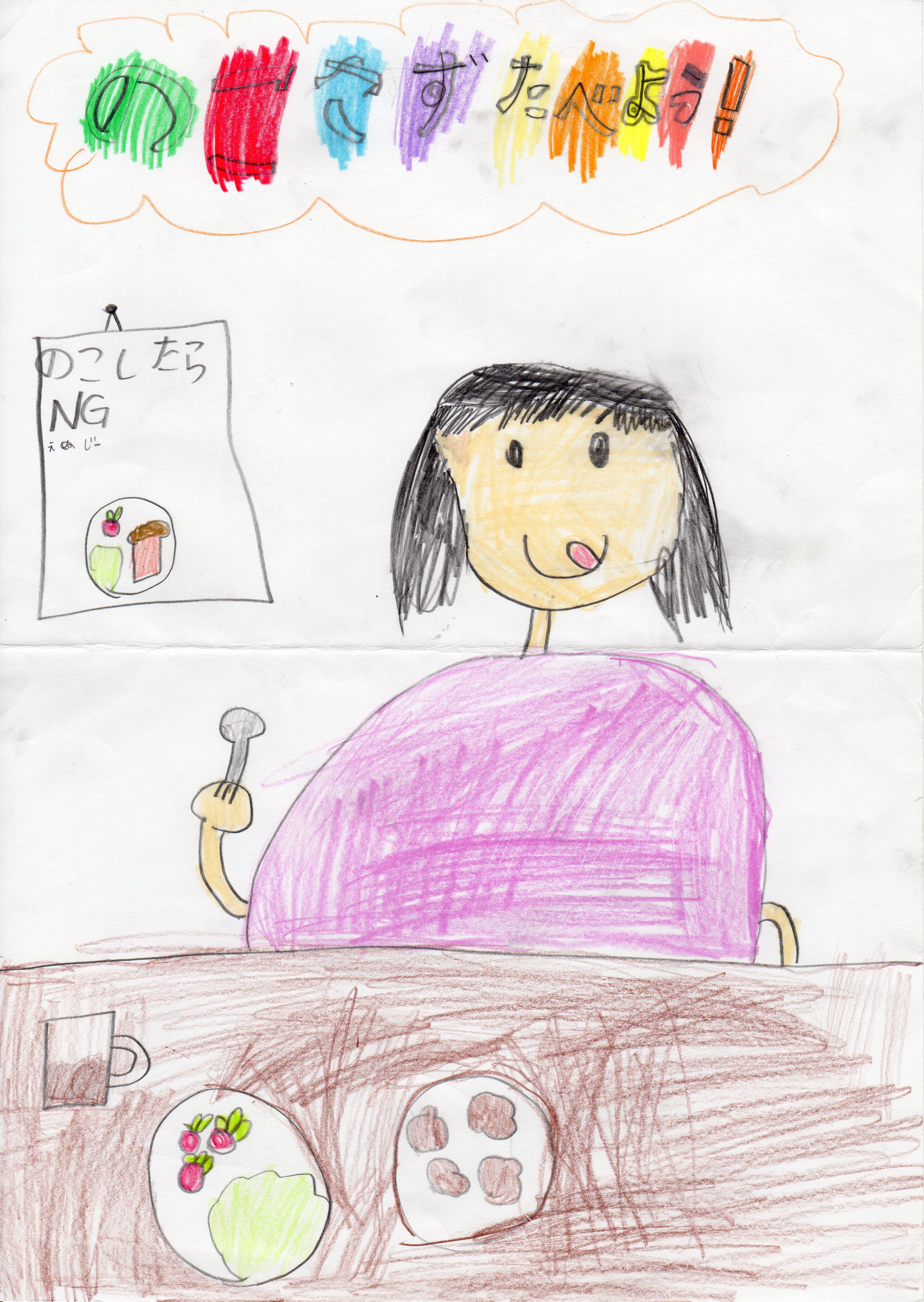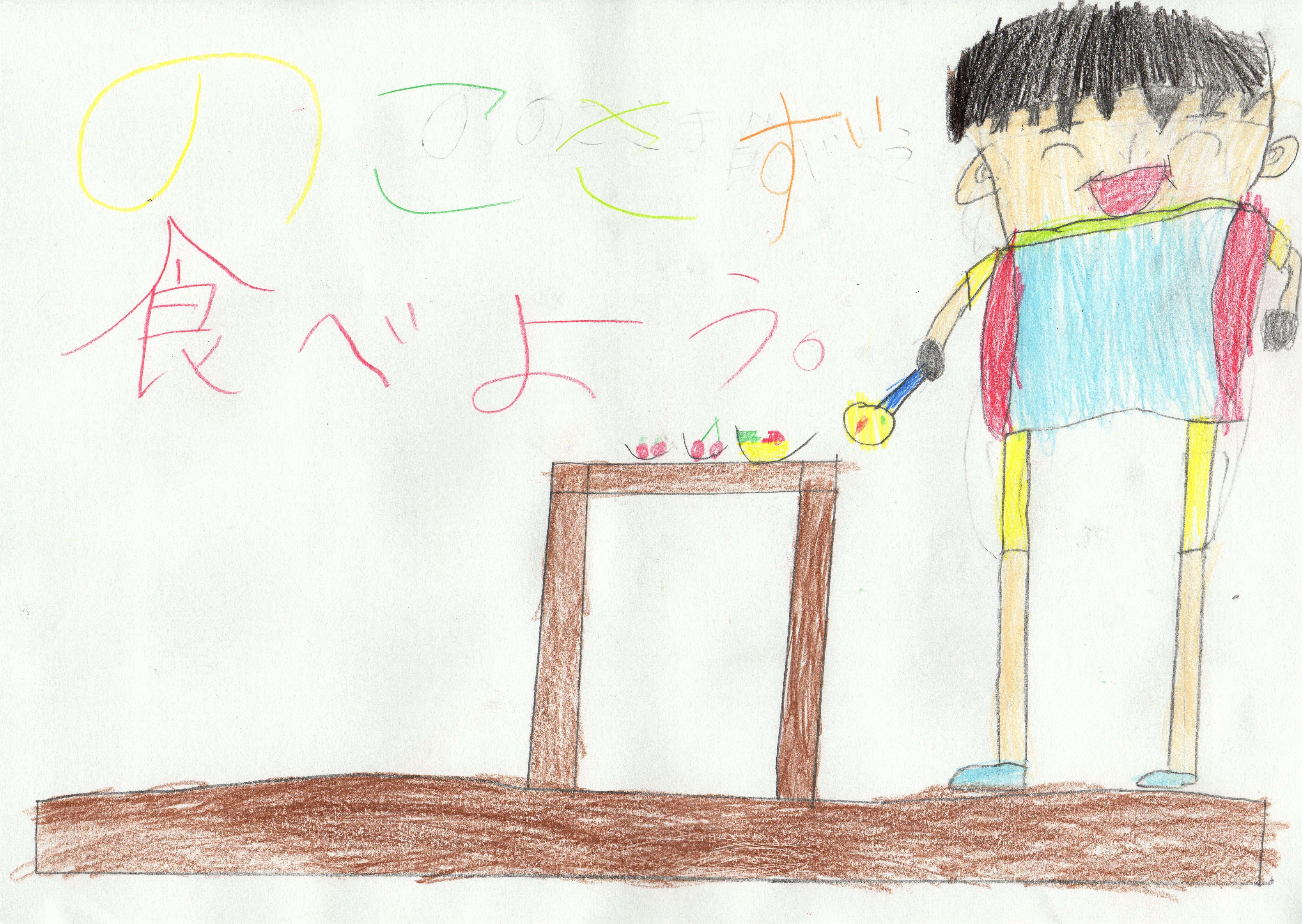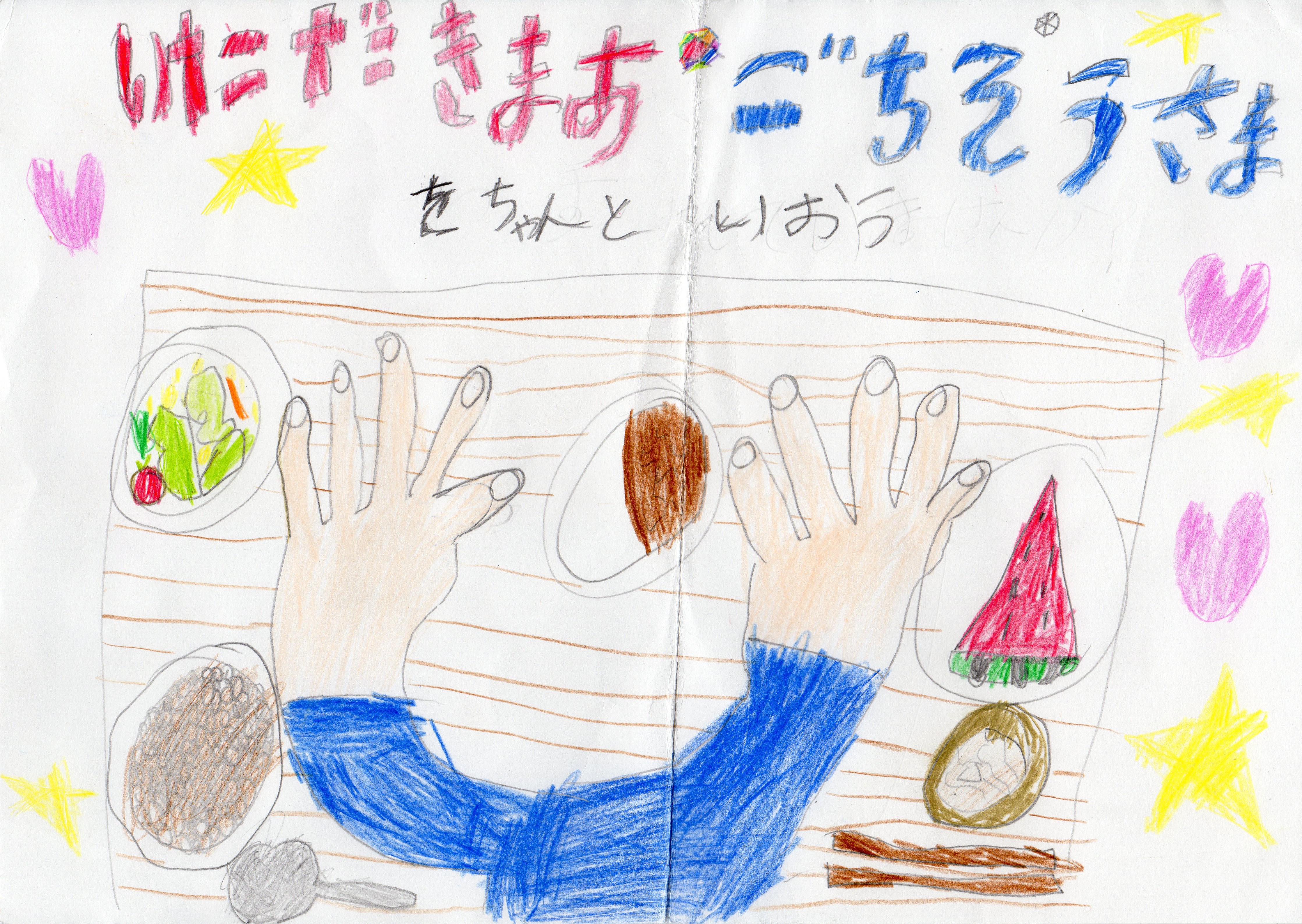 食事の楽しさや大切さ、栄養バランス、食文化、食事マナー、食品ロス削減、地産地消など「食べ物」に関するテーマで、ポスターを描いてくれました。